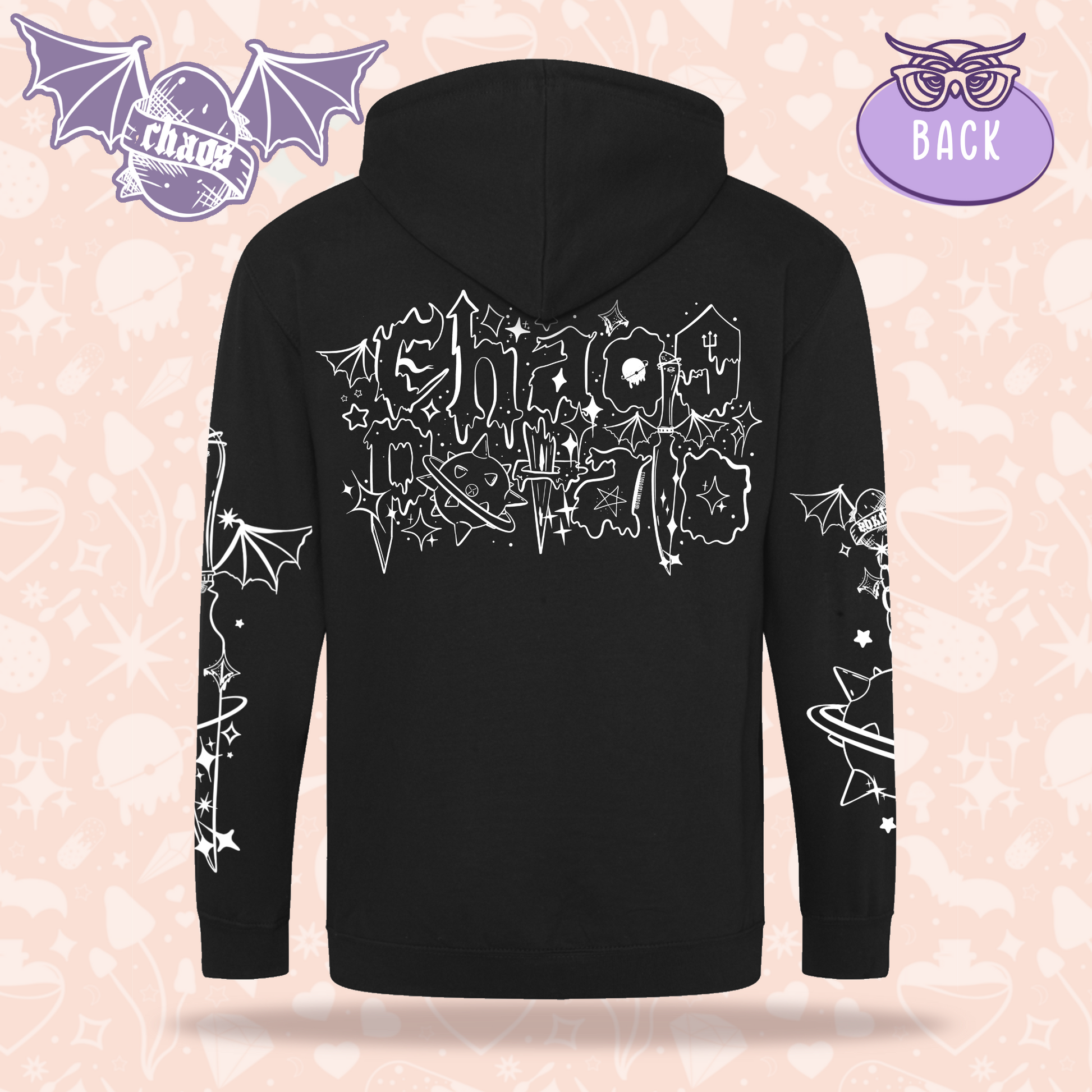 Unique and original black Zip Hoodie featuring the coolest design, bright colours and original style. This garb is right on trend and features some fun elements front, back and sides.